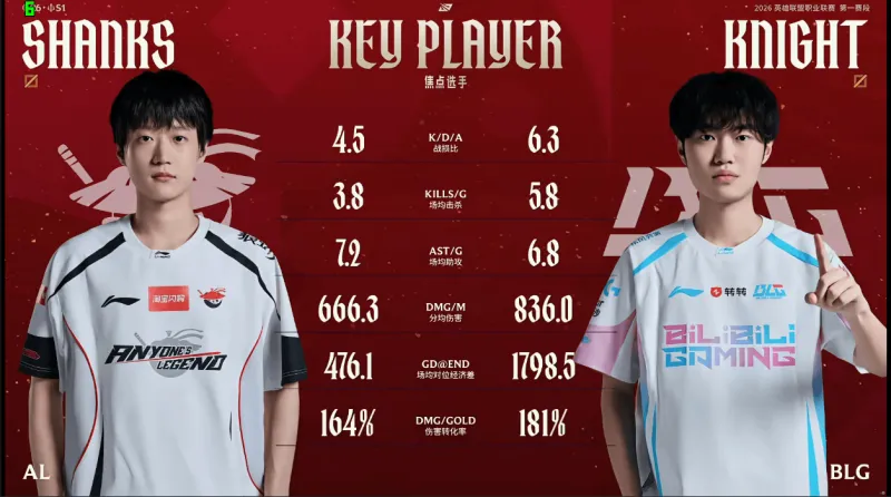 AL对阵BLG赛前数据对比:Knight多项数据领先于Shanks
